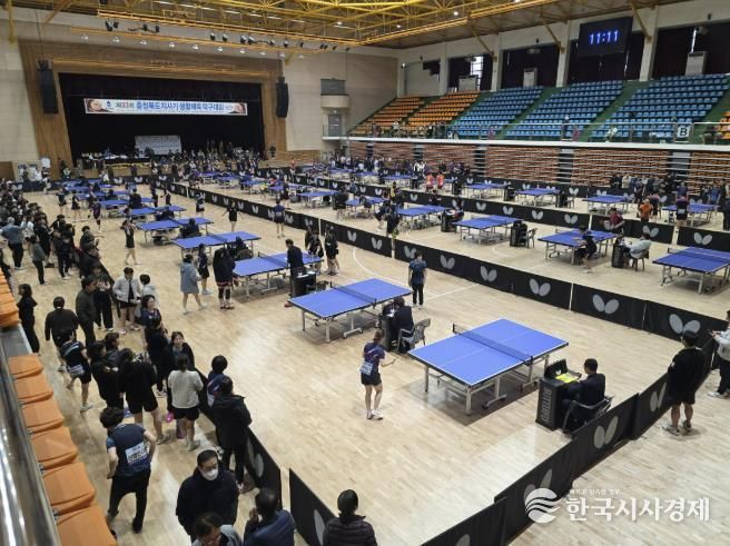한국시사경제 충북취재본부 | 지난 22일 제천체육관에서 열린 제33회 충청북도지사기 생활체육 탁구대회가 충북도 내 탁구 동호인 600명과 관계자를 포함한 총 650명이 참가하며 성황리에 마무리됐다. 대회는 충청북도체육회가 주최하고 충청북도탁구협회와 제천시탁구협회가 주관했으며, 제천시체육회가 후원했다.