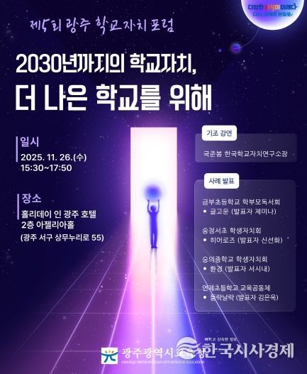 한국시사경제 광주취재본부 | 광주시교육청이 오는 26일 홀리데이 인 광주 호텔 2층 아젤리아홀에서 ‘제5회 광주 학교자치 포럼’을 개최한다.
