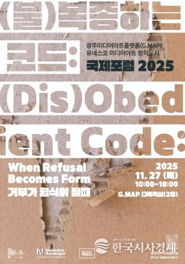 한국시사경제 광주취재본부 | 광주광역시는 27일 광주미디어아트플랫폼(G.MAP)에서 ‘(불)복종하는 코드(Dis)Obedient Code)’ 국제포럼을 열고, 인공지능 시대 기술권력의 확장 속에서 예술·철학이 제시할 새로운 윤리와 대응 방안을 논의한다.