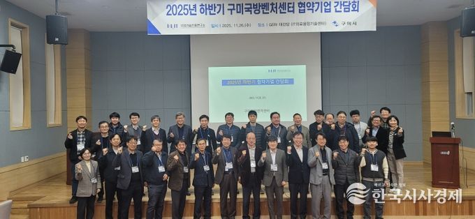 한국시사경제 경북취재본부 | 구미시는 11월 26일 금오테크노밸리 IT의료융합기술센터 대강당에서 '2025년 구미국방벤처센터 협약기업 간담회'를 열고 지역 방산기업의 성장 전략을 논의했다. 간담회에는 정성현 구미시 부시장과 구미국방벤처센터 협약기업 31개사를 포함해 50여 명이 참석했다.