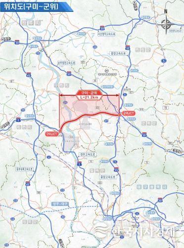 구미와 군위를 연결하는 구미-군위 고속도로는 대구 북부 중앙고속도로와 경북 서부 경부고속도로를 동서로 연결하는 국가간선도로망이며, 왕복 4차선 연장 21.2km 규모로 총사업비 1조 5,627억 원을 투입해 2029년 착공을 목표로 국가 재정 사업으로 본격 추진 된다.