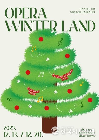 정갑균 대구오페라하우스 관장은 “겨울이라는 계절이 가진 따뜻한 감성 속에서, 어린이들이 자연스럽게 오페라를 만나고, 창작 활동을 통해 가족 간 유대감을 더욱 다지는 시간이 되길 바란다”며, “이러한 문화예술 경험이 미래 관객을 만들어가는 데 중요한 밑거름이 될 것”이라고 전했다.