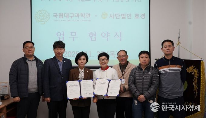 한국시사경제 디지털 뉴스팀 | 국립대구과학관(관장 이난희)은 27일 사단법인 효경(이사장 김양희)과 지역 실버 세대의 교육 및 복지 활동 활성화를 위해 업무협약(MOU)을 체결했다.