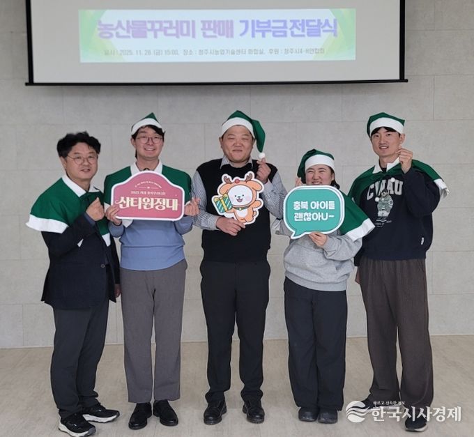 한국시사경제 오영주 기자 | 청주시4-H연합회는 28일 청주시농업기술센터 화합실에서 농산물꾸러미 판매로 마련한 수익금 616,000원을 초록우산어린이재단에 전달했다.