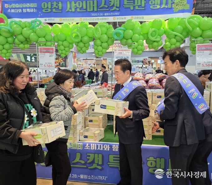시는 샤인머스캣 과잉 공급에 대응하고 지역 농산물 소비 촉진 및 농업 상생 문화 확산을 위해, 지난 9월 전국 하나로마트에서 샤인머스캣 30톤을 완판한 데 이어 10월에는 전국 롯데마트·롯데슈퍼 328개 지점과 이마트 132개 지점에서 진행한 영천포도 축제에서도 준비 물량 207톤을 모두 판매하는 성과를 거뒀다.