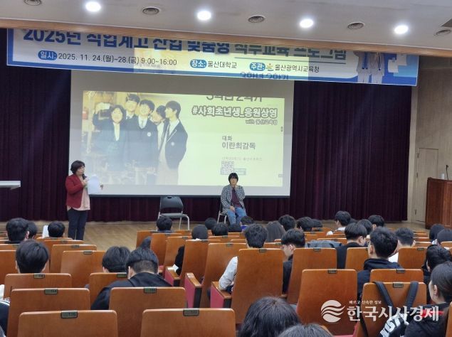 27일에는 울산대학교 시청각교육관 다매체 강당에서 현장실습과 취업이 확정된 3학년 학생 100명을 대상으로 직업계고 현장실습을 소재로 한 영화 ‘3학년 2학기’를 관람했다.