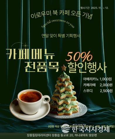 한국시사경제 전남취재본부 | 장흥힐링테라피센터는 최근 오픈한 ‘이로우미 북 카페’를 기념하고 다가오는 연말을 맞아 특별 할인 기획 행사를 진행한다고 밝혔다.