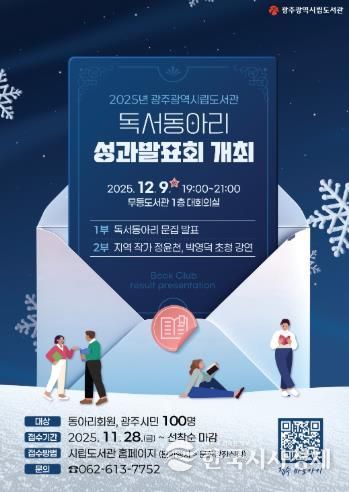 한국시사경제 광주취재본부 | 광주광역시립도서관은 오는 9일 무등도서관 대회의실에서 ‘2025년 시립도서관 독서동아리 성과발표회’를 개최한다.