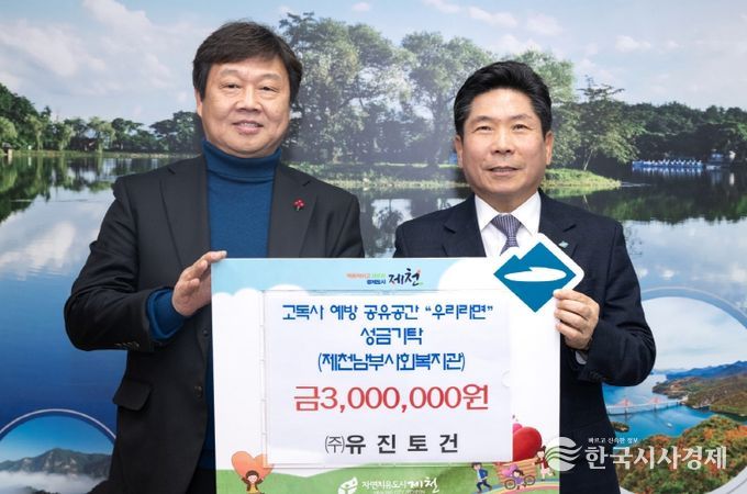 한국시사경제 충북취재본부 | 유진토건(대표 송창호)은 지난 4일 제천시청 시장실에서 제천남부사회복지관이 운영하는 고독사 예방 공유공간 ‘우리온실’ 사업을 지원하기 위해 성금 300만 원을 기탁했다.