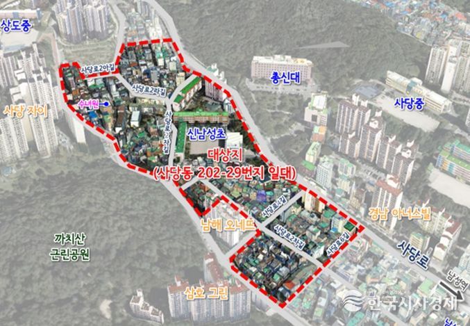 이 지역은 반경 500m이내 7호선 남성역이 인접해 교통이 양호하고 신남성초등학교, 상도중학교가 바로 옆에 위치해 교육 환경이 우수한 편이다. 사당동 202-29번지 일대 모아타운 관리계획 지정에 따라 주택 공급이 확대되며 주민들의 주거 안정에 기여하고 편리하고 안전한 주거환경으로대폭 개선될 것으로 기대된다.