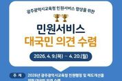 한국시사경제 광주취재본부 | 광주시교육청은 민원서비스 품질 향상을 위해 오는 9~20일 국민권익위원회 온라인 정책참여 플랫폼 ‘국민생각함’과 ‘시교육청 누리집’을 통해 대국민 의견을 수렴한다. 이번 의견 수렴은 국민의 다양한 목소리를 민원행정과 제도개선에 반영해 광주교육 민원서비스 만족도를 높이기 위해 추진됐다. 의견 수렴 내용은 ▲민원서비스 향상을 위한 제도 개선 ▲민원실 편의시설 및 환경 개선 ▲기타 민원서비스 이용 시 불편사항 및 개선 아이디어 등이다. 지난해 실시한 ‘2025년 민원서비스 개선 대국민 의견수렴’에는 595명의 국민이 참여해 다양한 의견을 제시했다. 시교육청은 올해도 다양한 의견을 듣기 위해 참여자 중 20명을 추첨해 모바일 음료 교환권을 증정하는 이벤트를 진행한다. 박준수 행정국장은 “시민 눈높이에 맞는 민원서비스를 제공하기 위해서는 현장 의견을 듣고 정책에 반영하는 것이 무엇보다 중요하다”며 “수요자 중심의 민원행정과 제도개선을 통해 신뢰받는 교육행정이 실현되도록 최선을 다하겠다”고 말했다.