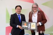 한국시사경제 광주취재본부 | 강기정 광주광역시장은 20일 시청 접견실에서 미쉘 윈트럽(Michelle Winthrop) 주한 아일랜드 대사를 접견, 광주와 아일랜드 간 애정과 협력 의지를 확인했다. 이날 접견은 지난 2024년 윈트럽 대사가 민주주의 정상회의를 계기로 광주를 첫 방문한 이후 2년여 만에 이뤄졌다. 오는 7월 아일랜드 귀국을 앞두고 ‘민주주의의 도시’에 대한 존경과 감사를 전하기 위해 광주를 찾은 윈트럽 대사는 코트 속에 한복 저고리를 곱게 차려입어 눈길을 끌었다. 윈트럽 대사는 “대사 임기가 끝나기 전, 제게 큰 감동을 준 광주에서 시간을 보내고 싶었다”며 “광주가 세계 민주화에 영향을 끼쳤다는 사실을 많은 아일랜드 사람들과 제가 잊지 않을 것”이라고 말했다. 강기정 시장은 “광주를 따뜻하게 기억해준 윈트럽 대사에 감사하다”며 “광주는 전 세계에서 누구도 부인할 수 없는 ‘민주주의의 도시’로 기억되고 있다. 이제는 광주만의 끼와 문화를 키워내 세계 어느 도시도 부럽지 않을 도시로 나아가겠다”고 다짐했다. 강기정 시장과 윈트럽 대사는 이어 종교 분야를 중심으로 한 광주와