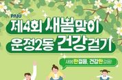 한국시사경제 경기북부취재본부 | 파주시 운정2동은 오는 3월 28일 11시, 운정건강공원(가온초교 옆)에서 '제4회 새봄맞이 운정2동 건강걷기'를 개최한다. ‘새봄맞이 운정2동 건강걷기’는 올해 4회째로 봄을 맞아 만발한 꽃과 자연을 느끼며 운정2동의 공원 산책길을 걷는 행사다. 참여자들은 운정건강공원(가온초 옆)에서 출발해 산내공원을 경유해 약 3km의 구간을 걷는다. 별도의 사전 신청 없이 누구나 참여할 수 있다. 파주시립예술단의 활기찬 식전 공연을 시작으로 ‘가온한양대태권도시범단’, ‘하이줌바’등 공연과 다양한 체험 공간 등 다채로운 행사가 준비되어 가족과 함께 즐길 수 있는 자리가 마련됐다. 특히 이번 행사는 작년보다 체험 공간을 대거 확충하여 시민들에게 다양한 볼거리, 즐길 거리를 제공한다. 또한, 이번 걷기행사는 주민 중심의 걷기 문화를 확산하여 더욱 건강한 운정2동을 만들기 위해 파주보건소, 운정보건소와 협업하여 개최된다. 운정보건소는 현장 건강 홍보관을 운영하고 파주보건소는 걷기 홍보물 제공, 모바일 걷기 앱 ‘워크온’걷기 챌린지 참여를 독려하여 일상 속 걷기 실천을 유도한다. 파주시