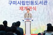 한국시사경제 경북취재본부 | 25년의 시간을 지나온 구미시립인동도서관이 복합문화공간으로 새롭게 태어났다. 구미시는 지난 23일 대대적인 리모델링을 마친 구미시립인동도서관 재개관식을 열고 시민과 함께 새로운 출발을 알렸다. 재개관식에는 구미시장을 비롯해 시·도의원, 관계기관 인사, 시민 등 200여 명이 참석했다. 행사는 경과보고를 시작으로 기념사와 축사, 축하공연, 테이프커팅, 시설 관람 순으로 진행됐다. 행사 당일 김유대 작가 초청 워크숍과 즉석사진 촬영, 체험 행사(태극기키링·마카롱·비누캔들만들기, 천아트), 장미숙 일러스트 작가 초대전도 함께 열려 재개관의 의미를 더했다. 인동도서관은 2000년 개관 이후 시설 노후화와 에너지 성능 저하, 폐쇄적인 공간 구조로 이용 불편이 꾸준히 제기돼 왔다. 시는 이를 해결하기 위해 2024년 국토교통부 공공건축물 그린리모델링 공모사업으로 46억 원(국비 32억, 도비 4억, 시비 10억))을 확보하고, 2025년 공공도서관 건립지원 전환사업을 통해 12억 원을 추가 확보해 전면적인 환경개선에 나섰다. 이번 리모델링의 방향은 명확했다. ‘엄숙한 학습 공간’이라는 기존 도