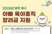한국시사경제 광주취재본부 | 광주광역시 북구가 육아휴직 중인 남성에게 최대 90만 원의 장려금을 지급한다. 25일 북구에 따르면 오는 26일부터 ‘2026년 아빠 육아휴직 장려금’ 신청이 시작된다. 이번 사업은 양육 친화 환경을 조성하고 휴직에 따른 경제적 부담을 완화하기 위해 지난해 북구가 광주에서 처음으로 시행한 육아 지원 정책이다. 올해는 5,400만 원의 예산을 투입해 60여 명에게 장려금을 제공할 계획이다. 지원 대상은 2025년 1월 1일 이후 육아휴직자 중 휴직 시작일 이후 1개월 이상 또는 종료 후 12개월이 지나지 않은 남성이다. 또한 고용보험법에 따른 육아휴직 급여 지급 대상이면서 신청일 기준 6개월 이상 북구에 주민등록을 두고 있어야 하고 아동도 북구 주민이어야 한다. 다만, 육아휴직급여 특례 적용 대상자(6+6육아휴직)는 특례 기간이 종료된 달의 다음 달부터 신청할 수 있다. 장려금 신청은 정부24를 통한 온라인 신청만 가능하고 오는 26일부터 예산 소진 시점까지 지원자를 선착순 모집한다. 최종 선발된 지원 대상자에게는 매월 30만 원씩 최
