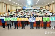 한국시사경제 광주취재본부 | ‘전남광주통합특별시 설치를 위한 특별법’의 국회 통과를 기념하고, 통합특별시 출범을 향한 시도민 공감대 형성과 실행 의지를 공유하는 자리가 마련됐다. 광주광역시와 전라남도는 3일 나주시 한국에너지공과대학교 대강당에서 ‘광주전남 행정통합 시도민보고회’를 열어 특별법 통과까지 추진 경과와 미래 비전을 공유했다. 이날 보고회에는 강기정 광주시장과 김영록 전남지사, 시도의회 의장, 범시도민협의회 위원, 시도민 등 700여명이 참석했다. 보고회는 ▲전남광주통합특별법 브리핑 ▲시도민이 기대하는 변화(정보무늬 투표) ▲내가 바라는 전남광주통합특별시 희망 메시지 발표(시도민 대표 10명) ▲미래 다짐 퍼포먼스 및 기념 촬영 순으로 진행됐다. ‘시도민이 기대하는 변화’ 투표에서는 일자리 확대, 기업 유치, 청년 정착 확대가 주요 과제로 선정됐다. 통합을 통한 지역경제 활성화에 대한 기대가 높은 것으로 확인됐다. 또 시도민 대표 10명이 참여하는 ‘내가 바라는 전남광주통합특별시’에서는 인공지능(AI)·반도체 등 첨단산업 육성, 균형발전, 골목상권 활성화에 대한 염원이 주를 이