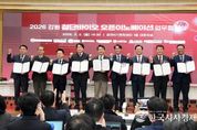 한국시사경제 권충언 기자 | 홍천군은 2월 2일, 강원특별자치도, 춘천시와 함께 춘천 ICT벤처 센터에서 「강원 첨단 바이오 오픈 이노베이션 프로그램」 업무협약식과 사업설명회를 개최하고, 올해부터 사업을 본격 확대 추진한다고 밝혔다. 이번 협약식에는 앱티스, 휴젤을 비롯해 강원테크노파크, 스크립스코리아항체연구원, 춘천바이오산업진흥원, 강원대학교 산학협력단 등 민관 산학연 9개 협력 주체가 참여했다. 홍천군은 이번 협약을 통해 홍천 국가항체클러스터를 중심으로 기업 지원, 연구 협력, 기술 검증 등 각 기관의 역량을 결집해 도내 바이오산업을 체계적으로 성장시키기 위한 강력한 협력체계(거버넌스)를 구축할 계획이다. 이날 사업설명회에서 홍천군은 별도의 발표 세션을 통해 홍천군만의 바이오기업 지원 정책을 공유했다. 특히 이번 프로그램이 2030년까지 운영됨에 따라, 군은 항체 중심의 신약 개발 분야에서 관내 기업들이 실질적인 혜택을 볼 수 있도록 적극 지원할 방침이다. ‘오픈이노베이션’ 전략은 대기업의 인프라와 중소, 벤처기업의 기술력을 결합하는 방식으로, 신약 개발 시 발생하는 막대한 비용과