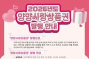 한국시사경제 권충언 기자 | 양양군은 2026년부터 기존 종이형으로만 발행하던 ‘양양사랑상품권’을 카드형까지 확대 발행해 지역 내 소비 촉진과 자금의 선순환 구조를 한층 강화할 계획이라고 17일 밝혔다. 양양사랑상품권은 지난 9월 1일 발행을 시작한 이후 체육시설과 휴양림 시설을 중심으로 활용되며, 양양군을 방문하는 외지 관광객들의 소비를 촉진하는 효과를 보이고 있다. 군은 이러한 성과를 바탕으로 내년 1월 2일부터 종이형 양양사랑상품권 5천 원권과 1만 원권을 일반에 판매하고, 이어 1월 19일부터는 카드형 상품권까지 발행해 주민과 방문객 모두가 보다 편리하게 이용할 수 있도록 할 방침이다. 양양사랑상품권은 월 40만 원 한도 내에서 구입할 수 있으며, 구매 시 10% 할인 혜택을 받을 수 있다. 종이상품권은 농협을 비롯한 관내 12개 금융기관에서 구입 가능하고, 카드상품권은 지역 내 농협 및 한국조폐공사 지역상품권 앱 ‘Chak(착)’을 통해 손쉽게 신청·충전할 수 있다. 현재 양양사랑상품권 가맹점 수는 972개소에 이르며, 군은 앞으로도 지속적인 가맹점 확대를 통해 이용 편의를 높이고, 지역