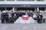 한국시사경제 권충현 기자 | 의왕시가 새중앙교회로부터 크리스마스를 맞아 어려운 이웃을 돕기 위한 생필품 꾸러미 ‘사랑의 천사박스’ 1,004상자(약 4,000만 원 상당)를 기부받았다고 밝혔다. 시청 본관 앞 광장에서 열린 전달식에는 새중앙교회 황덕영 담임목사와 나문성·박재관 목사, 이칠수·신종범·김경화 장로 등 새중앙교회 관계자들이 참석해 따뜻한 나눔의 뜻을 함께했다. 새중앙교회 황덕영 담임목사는“크리스마스를 맞아 소외된 이웃들에게 사랑을 전하고자 하는 성도들의 마음을 모아 사랑의 천사박스를 준비했다”며“이 작은 정성이 어려운 이웃들에게 위로가 되고, 따뜻한 겨울을 보내는 데 도움이 되기를 바란다”고 말했다. 방경미 복지문화국장은“해마다 변함없이 나눔을 실천해 주시는 새중앙교회와 성도 여러분께 깊이 감사드린다”며“시에서도 소외되는 이웃이 없도록 지역사회를 더욱 세심하게 살피고, 촘촘한 복지 지원에 최선을 다하겠다”고 밝혔다. 한편, 이날 기부된 생필품 꾸러미는 경기사회복지공동모금회에 기탁 처리된 후, 관내 저소득층 가구에 전달될 예정이다.