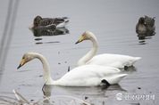 한국시사경제 권충현 기자 | 의왕도시공사에서 위탁 운영 중인 조류생태과학관이 왕송호수 일대에서 실시한 생태환경 모니터링 과정에서 멸종위기야생생물 2급이자 천연기념물 제201-2호로 지정된 큰고니(Cygnus cygnus, 백조)를 관찰했다고 밝혔다. 큰고니는 오리과에 속하는 대형 조류로, 백조를 상징하는 우아한 흰색 깃털과 검은색 부리 끝에 이어지는 노란색 기부가 특징이다. 주로 겨울철 우리나라를 찾는 대표적인 겨울 철새로 알려져 있으며, 봄철이 다가오면 번식지인 툰드라를 포함한 유라시아 북부 고위도 지역으로 이동하기 위해 북상을 준비한다. 조류생태과학관 학예연구사에 따르면 “이번에 관찰된 큰고니들은 이른 봄의 낮은 기온 속에서 왕송호수의 수생식물을 먹이로 섭취하며 잠시 머무는 것으로 확인됐다”고 설명했다. 특히, “모니터링이 진행된 날에도 큰고니 4~5개체가 왕송호수 남단 갈대숲 일대에서 휴식을 취하는 모습이 포착되며, 왕송호수가 철새들의 중요한 중간 기착지이자 안정적인 서식 환경으로 기능하고 있다는 것을 보여준다”고 말했다. 최재경 공사 교통레저처장은 “왕송호수가 멸종위기 철새들이 안심하고 머물 수 있는 생