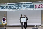 한국시사경제 기동취재팀 | (사)광주시기업인협회 도척지회는 지난 22일 도척스포츠타운에서 송년회를 개최하고 연말연시를 맞아 도척면에 이웃돕기 성금 300만 원을 기탁했다. 이번 송년회는 한 해를 마무리하며 회원 간 결속을 다지고 상호 격려하기 위해 마련된 자리로, 협회 회원들이 십시일반 정성을 모아 마련한 성금을 함께 전달하며 의미를 더했다. 김영기 회장은 “경기가 어려울수록 서로를 위한 나눔이 더욱 중요하다고 생각한다”며 “앞으로도 지역사회와 함께하는 다양한 사회공헌 활동을 지속하며 관내 어려운 이웃을 돌보는 데 최선을 다하겠다”고 말했다. 이에 대해 고형근 면장은 “어려운 시기에도 나눔을 실천해 주신 김영기 회장과 회원 여러분께 감사드린다”며 “기탁된 성금은 도움이 필요한 이웃들이 따뜻한 겨울을 보낼 수 있도록 소중히 사용하겠다”고 밝혔다. 한편, 광주시기업인협회 도척지회는 매년 300만 원의 성금을 기탁하며 꾸준한 나눔 활동을 이어오고 있으며 도척면의 각종 지역 행사 후원에도 적극 참여하는 등 지역사회 발전에 기여하고 있다.