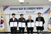 한국시사경제 기동취재팀 | 여주도시공사와 민주노총 공공운수노조 여주도시공사지회는 12월 9일 여주도시공사 사옥에서 2025년 임금 및 단체협약 체결식을 개최했다고 밝혔다. 이번 협약은 상호 신뢰와 존중을 바탕으로 진행된 성실한 교섭의 결실로, 노사 상생과 지속 가능한 발전을 위한 중요한 발판이 될 전망이다. 공사와 노동조합은 이번 협약을 통해 직원들이 안정적인 근무여건 아래 역량을 발휘할 수 있는 환경을 조성하고, 공공기관으로서 사회적 책임을 다하기 위한 제도 개선과 협력 체계를 강화해 나갈 방침이다. 임명진 사장은 “이번 임금·단체협약은 노사 간 소통과 이해를 바탕으로 이루어낸 결실”이라며, “앞으로도 신뢰 기반의 노사 협력을 통해 시민에게 더 나은 공공서비스를 제공할 수 있도록 노력하겠다"고 밝혔다. 여주도시공사는 앞으로도 합리적인 노사관계 정착을 위해 소통과 협력을 강화하고, 시민 중심의 공기업으로서 책임과 역할을 다하기 위한 다양한 노력을 이어갈 계획이다.