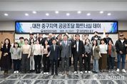 한국시사경제 대전취재본부 | 대전 중구는 10일 중구청 대회의실에서 대전지방조달청과 공동으로 ‘대전 중구지역 공공조달 파트너십 데이’를 개최했다고 밝혔다. 이번 행사는 지역 중소기업의 공공조달시장 진입 지원, 기업–수요기관 간 교류 확대, 조달제도 이해도 향상을 위해 마련됐으며, 중구 관내 기업과 중구청 관계자 등 30여 명이 참여했다. 행사에는 ▲조달기업 제품 소개 ▲조달등록 절차 안내 ▲조달청 지원제도 설명 등 기업들에게 실질적인 도움을 주는 프로그램이 진행됐으며, 특히, 중구 관내 조달기업과 중구청 수요부서를 1:1로 연결하는 맞춤형 매칭 상담이 운영돼 큰 관심을 모았다. 기업들은 자사의 조달등록 제품을 직접 소개하고, 수요부서 담당자들은 제품 성능·활용도·가격 등을 현장에서 즉시 확인하며 실제 구매 가능성을 논의하는 등 실무 중심의 상담이 이뤄졌다. 중구 관계자는 “지역 기업이 공공조달 시장에서 더욱 활발히 활동할 수 있도록 실질적인 지원을 지속하겠다”라며, “대전지방조달청과 협력해 기업의 조달시장 진입을 돕는 다양한 프로그램을 확대해 나가겠다”라고 말했다.