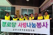 한국시사경제 문화팀 | 김천시 사회적경제협의회가 지난 2월에 이어 3월에도 지역 어르신들을 위한 ‘찾아가는 맞춤형 봉사활동’을 펼쳤다. 협의회는 지난 주말, 평화남산동에 위치한 중앙경로당과 도서경로당 두 곳을 방문하여 각 기업이 가진 전문 기술을 활용해 어르신들의 생활 불편을 해소하고 안전한 휴식 공간을 조성하는 데 힘을 모았다. 이번 봉사활동은 지역 내 사회적경제 기업들이 가진 전문 기술과 자원을 결합해 지역사회의 문제를 함께 해결하고, 나눔의 문화를 확산시키기 위해 마련됐다. 특히, 일회성 행사에 그치지 않고 지난달에 이어 정기적인 활동으로 정착시키며 지역사회 안전망 구축에 앞장서고 있다는 점에서 큰 의미를 더했다. 봉사활동에 참여한 기업들은 각자의 전문 분야별로 역할을 나누어 세심한 서비스를 제공했다. 먼저, 주식회사 디엔케이는 평소 어르신들이 직접 세탁하기 어려운 대형 이불들을 수거하여 깨끗하게 세탁․건조해 전달하며 어르신들에게 뽀송뽀송한 잠자리를 선사했다. ㈜제이케이소프트는 본격적인 더위를 대비하여 경로당 내 에어컨 분해 청소 및 살균 작업을 진행해 쾌적한 실내