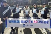 한국시사경제 사회팀 | 수원특례시 영통구는 지난 22일 영통구청 중심상가 일대에서 1회용품 사용을 줄이고 친환경 소비 문화를 정착시키기 위한 길거리 캠페인을 실시했다. 이번 캠페인은 수원시에서 추진 중인 ‘1인 1일 쓰레기 30g 감량 챌린지’ 홍보와 함께, 쓰레기 문제의 심각성을 알리고 시민들의 자발적인 생활쓰레기 감량을 유도하기 위해 마련됐다. ‘1인 1일 쓰레기 30g 감량 챌린지’는 시민 한 명이 하루 배달용기 1개, 테이크아웃잔 3개, 라면 봉지 6개에 해당하는 쓰레기 30g을 줄이자는 취지로, 목표를 달성하면 올해 수원시에서 발생할 것으로 예상되는 쓰레기 13만 3천 톤의 10%인 1만 3천 500톤을 줄일 수 있다. 이날 영통구청 환경위생과에서는 어깨띠를 두르고 시민들에게 쓰레기 감량 챌린지를 홍보하며 적극적인 동참을 호소했다. 특히 비닐봉투 사용을 줄이자는 의미로 준비한 장바구니는 시민들의 큰 호응을 얻기도 했다. 장수석 영통구청장은 “추운 날씨에도 캠페인에 함께해 주신 분들께 감사드린다”며 “앞으로도 지속적인 홍보 활동을 통해 깨끗하고 살기 좋은 영통구를 만드는 데 앞장서겠다”고 말했다.