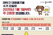 한국시사경제 사회팀 | 대전 대덕구는 주민 생활편의를 높이고 불법투기를 예방하기 위해 2026년 1월부터 대형폐기물 수거일을 동별 주 2회로 확대 운영한다. 그동안 대덕구는 대형폐기물을 주 1회 수거해 왔으나, 배출 시기와 수거 일정이 맞지 않아 주민 불편이 이어져 왔다. 이에 구는 주민 의견과 현장 여건을 반영해 모든 동을 대상으로 주 2회 수거 체계로 전환하기로 했다. 수거는 월요일부터 토요일까지 평일 기준으로 운영되며, 동별 수거 요일은 대덕구 누리집과 행정복지센터 게시판, 안내 현수막 등을 통해 사전에 안내된다. 신청 방법은 기존과 동일하게 인터넷 배출신고(대덕구 홈페이지) 또는 전화 접수를 통해 가능하며, 대덕구 자원순환센터가 수거를 담당한다. 수거 대상은 가구, 가전제품, 이불 등 종량제 봉투로 배출이 어려운 대형 폐기물로, 신고 후 스티커를 부착하면 된다. 대덕구는 이번 수거 주기 확대를 통해 장기간 배출 대기 문제를 해소하고 무단투기와 방치 사례가 크게 줄어들 것으로 기대하고 있다. 최충규 대덕구청장은 “주민이 체감하는 생활환경 개선이 무엇보다 중