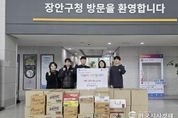한국시사경제 사회팀 | 수원시 장안구는 지난 23일 조원동 소재 예다움태권도에서 원아들과 함께 정성을 모아 관내 어려운 이웃을 위해 라면 1,000개를 기부했다고 전했다. 예다움태권도는 2023년부터 꾸준히 기부 활동을 이어오며 지역사회에 따뜻한 나눔을 실천해 왔으며, 이번 행사 역시 원아들이 직접 참여해 나눔의 의미를 배우고 실천하는 뜻깊은 자리로 마련됐다. 안웅 관장은 “작은 정성이지만 아이들과 함께 나눔을 실천할 수 있어 더욱 의미가 크다”며 “앞으로도 지역사회와 함께 성장하는 도장이 되도록 노력하겠다”고 말했다. 이일희 장안구청장은 “아이들이 직접 참여한 기부라는 점에서 특별한 의미가 있다”며 “꾸준한 나눔 활동이 지역사회에 큰 힘이 되고 있다”고 감사의 뜻을 전했다. 이번 기부는 원아들과 학부모들이 함께 뜻을 모아 진행됐으며 지역사회에 따뜻한 온정을 전하는 계기가 됐다.