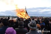 한국시사경제 오영주 기자 | 서부산권 최대 달집 축제인‘제23회 사상전통달집놀이’가 3천여 명의 구민이 참여한 가운데 성화리에 개최됐다. 부산 사상구는 정월대보름인 3월 3일 오후 삼락생태공원에서 한 해의 안녕과 풍요를 기원하는 ‘제23회 사상전통달집 놀이’를 열었다. 이번 행사에는 궂은 날씨에도 불구하고 행사장을 찾은 3천여 구민과 관람객이 참여해 ▲송액 부적 쓰기 ▲소망지 쓰기 ▲소망터널 걷기 등 다양한 체험 프로그램을 즐겼다. 오후 3시 영월 기원제를 시작으로 오후 4시에는 국악인 오정해의 국악 공연과 한국무용 공연이 이어지며 전통의 흥을 더했다. 행사의 핵심 프로그램인 ‘달집태우기’는 주민들이 한지에 직접 작성한 소망지를 대형 달집에 달아 함께 태우는 순서로 진행됐다. 정월대보름의 의미를 상징적으로 담아낸 달집태우기는 화합과 희망의 장을 연출하며 축제의 절정을 이뤘다. 구는 야간 및 화기 사용 행사라는 특성을 고려해 안전관리를 빈틈없이 하고, 각종 사고에 대비한 현장 대응체계를 구축하는 등 안전한 행사 운영에 총력을 기울였다. 오후 6시 열린 달집 점화