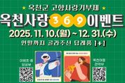 한국시사경제 오영주 기자 | 옥천군이 연말맞이 고향사랑기부제 활성화를 위해 특별 이벤트를 진행한다. 이번 이벤트는 옥천의 발전을 위해 마음을 보내주는 기부자들에게 감사를 전하고, 다른 기부제와 차별화되는 혜택을 홍보하는 등 더 많은 사람들이 제도 취지에 공감하며 참여할 수 있도록 마련됐다. '옥천사랑369 이벤트' 참여 방법은 11월 10일부터 12월 31일까지 고향사랑e음, 은행 어플(국민, 기업, 신한, 하나, 농협) 또는 전국 농협은행(방문)에서 옥천군 또는 지난 10월 모금을 개시한 특정사업 '옥천군 예체능 꿈나무 지원'에 10만 원 이상 기부하고 답례품 선택까지 완료하면 된다. 기간이 종료되면 예산 소진 시까지 30, 60, 90, 120, 150...번째 답례품 주문자에게는 기본혜택(세액공제, 답례품) 외 추가 혜택으로 본인이 선택한 답례품을 하나 더 제공한다. 기부자가 늘어날수록 추가 혜택 수혜자도 확대되기때문에 연말 기부 활성화에 기여할 것으로 전망된다. 고향사랑기부제는 세액공제 혜택과 함께 지역 특산품도 답례로 받을 수 있어 지역도 돕고 개인에게도 이득이 되는 제도다.
