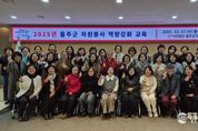 한국시사경제 울산취재본부 | (사)울주군자원봉사센터가 17일 군청 문수홀에서 울주군 자원봉사 전문교육강사단과 자원봉사단체 리더 등 40여명이 참석한 가운데 ‘2025 자원봉사자 역량강화 교육’을 개최했다. 이번 교육은 ‘변화 속의 봉사, 함께 가치를 나누다’을 주제로 자원봉사자의 전문성을 높이고, 지속적인 활동 속에서 누적된 피로와 스트레스를 완화하고자 마련됐다. 이날 부산자원봉사포럼 공동대표 최유미 강사를 초빙해 자원봉사 트렌드 이해, 가치 재발견 등 내용으로 강의를 진행했다. 손영순 센터장은 “지역 곳곳에서 봉사와 나눔을 실천하는 자원봉사자들에게 깊이 감사드린다”며 “이번 교육이 자원봉사자의 성장과 역량 강화에 도움이 되는 계기가 되길 바란다”고 말했다.