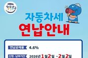 한국시사경제 울산취재본부 | 울산 남구는 오는 2월 2일까지 올해 1월 자동차세 연납 신청을 접수한다고 밝혔다. 자동차세 연납은 매년 6월과 12월 두 차례 정기 납부하는 자동차세를 일시에 납부하면 납부 시기에 따라 세액을 공제해 주는 제도로 지난해와 동일하게 1월 연납은 연세액의 약 4.6%가 공제된다. 자동차세 연납 신청은 차량 소재지 관할 구청에 직접 방문하거나 전화로 신청 또는 인터넷(위택스)으로도 가능하다. 기존 연납한 차량은 다음 해에 별도로 신청하지 않아도 납부서가 발송되며, 자동차를 새로 등록한 경우에는 별도 신청이 필요하다. 납부 기한은 2월 2일까지이며 미납 시 연납은 취소되고 6월과 12월에 기존세액으로 정기분 자동차세가 부과된다. 납부 방법으로는 △전국 금융기관 고지서 납부 △금융기관 CD/ATM기에서 본인 통장, 현금카드, 신용카드 조회 및 납부 △금융기관 방문 없이 모바일페이, 위택스, ARS, 지방세입계좌 및 가상계좌 이체 등 다양한 방법으로 편리하게 납부할 수 있다. 남구 관계자는 “주민들의 납세편의를 위해 ‘큰 글씨 자동차세 연납 납부서’ 를