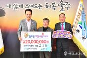 한국시사경제 울산취재본부 | 고기한 ㈜에이치앤티 대표가 3일 울주군에 고향사랑기부금 연간 최고액인 2천만원을 전달하면서 4년째 고향사랑을 실천하고 있다. ㈜에이치앤티는 울주군에 소재한 기업체로 영상 감시, 재난 예·경보, 전광판 시스템을 설치 및 유지보수업을 하고 있다. 2023년부터 울주군 저소득층 의료비·주거비 지원에 힘을 보태고 있으며, 지난해에는 대형 산불이 발생한 울주군과 고향인 경북 영덕군에 성금 총 2천만원을 전달하는 등 재난 피해 이재민 지원에도 적극 나섰다. 고기한 대표는 “고향사랑기부로 새해를 시작하게 돼 뜻깊고 기쁘다”며 “지역을 행복하게 만드는 좋은 제도에 많은 분들이 함께해주길 바란다”고 말했다. 이순걸 군수는 “2023년부터 매년 울주군 발전을 위해 기부해주신 고기한 대표께 깊은 감사를 드린다”며 “기부금은 군민과 기부자가 공감할 수 있는 사업에 투명하고 소중하게 사용하겠다”고 밝혔다. 한편 올해부터 고향사랑기부 금액이 10만원 초과 20만원 이하인 경우 기존 16.5%였던 세액공제율이 44%로 상향됐다. 산불 등 특별재난지역에 선포일로부터 3개월