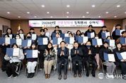 한국시사경제 윤광희 기자 | (재)인천동구장학재단(이사장 김찬진)은 지난 26일 구청 소나무홀에서‘2026년도 근로장학생 장학증서 수여식’을 개최했다고 밝혔다. 동구에 2년 이상 거주한 대학생을 대상으로 매년 12월 30명이 선발되는 근로장학생은 이듬해 1월 관내 행정기관 및 사회복지시설에서 근로활동을 하고 그 대가로 장학금을 받는다. 김찬진 동구청장은“근로장학생으로 근무한 20일간의 경험이 책임감과 성실함을 배우는 소중한 시간이 됐을 것”이라며 “앞으로도 동구장학재단은 지역 학생들이 다양한 경험을 통해 성장할 수 있도록 지속적인 지원과 노력을 이어가겠다”고 말했다. 한편, 2015년에 출범한 (재)인천동구장학재단은 현재까지 동구 지역 학생 6천822명에게 36억4천721만원의 장학금을 지원했다.
