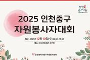 한국시사경제 윤광희 기자 | 인천중구자원봉사센터는 오는 10일 오후 2시 인천중구문화회관 공연장에서 ‘2025 인천중구자원봉사자 대회’를 개최한다고 밝혔다. 이번 행사는 한 해 동안 지역 곳곳에서 나눔과 봉사를 실천한 자원봉사자들을 격려하고, 자원봉사 활동의 가치 확산과 참여 분위기 조성을 위해 마련됐다. 행사에는 중구청장, 중구의회 의장을 비롯한 지역 내 주요 기관·단체장, 자원봉사자 등 500여 명이 참석할 예정이다. 이번 대회는 1985년 UN이 지정한 ‘세계자원봉사자의 날(12월 5일)’을 기념해 개최되는 것이다. 올해로 23회를 맞는 중구 자원봉사자 대회는 식전 공연을 시작으로 자원봉사활동 영상 상영, 내빈 소개, 우수 자원봉사자 시상, 인증패·인증서 수여, 축사, 경품추첨 등의 순서로 진행된다. 식전 공연은 ‘블리스치어리더팀’이 맡아 화려한 안무와 완성도 높은 퍼포먼스, 탄탄한 팀워크로 활기찬 무대를 선보이며 대회의 분위기를 한층 고조시킬 예정이다. 또한 본 행사는 대한민국 유일의 올라운드 스포츠 MC로 알려진 허지욱 전문 MC가 진행을 맡아, 더 역동적이고 현장