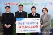 한국시사경제 윤광희 기자 | 고성군은 3월 4일 NH농협은행 고성군지부(지부장 이동원)와 2025년도 제휴카드 기금 전달식을 가졌다. 제휴카드 기금은 고성군과 NH농협은행 고성군지부가 체결한 협약에 따라 매년 고성군 법인카드(법인・보조금・공무원복지 카드 등) 사용액의 0.1 ~ 1.0%를 적립해 조성되고 있다. 이날 NH농협은행 고성군지부가 고성군에 전달한 제휴카드 기금은 7,154만 원으로, 전달받은 기금은 고성군 세입으로 편성되어 군민 복지증진과 지역사회 발전을 위한 재원으로 활용할 계획이다. 군 관계자는 “매년 제휴카드 기금을 적립 조성해준 NH농협은행 고성군지부에 감사드리며, 전달된 적립기금은 고성군 발전을 위해 소중하게 사용하겠다”라고 말했다. 또한, 이동원 지부장은 “군과 제휴를 통해 적립된 기금이 지역사회에 보탬이 되어 큰 보람을 느끼며, 앞으로도 고성군 발전을 위해 노력하겠다”라고 말했다.