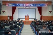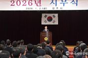 한국시사경제 윤광희 기자 | 사천시는 2일 오전 10시 시청 대강당에서 박동식 사천시장을 비롯해 김제홍 부시장, 국·소장 및 전 직원이 참석한 가운데 2026년 병오년 시무식을 개최했다. 이날 시무식은 시정 홍보영상 시청, 유공 공무원 표창 수여, 신년사 순으로 진행됐으며, 공식 행사에 앞서 2025년 혁신주니어보드 최우수팀의 이지연 주무관이 ‘MZ의 시선에서, 소소하고 확실한 혁신’을 주제로 조직문화와 일하는 방식 개선에 대한 아이디어를 제시해 시무식 분위기에 변화를 더했다. 특히, ▲글로벌 우주항공복합도시 도약 ▲머무는 해양·문화 관광도시 완성 ▲민생경제 회복 및 지역상권 보호 ▲교통·정주환경 개선과 시민 안전 강화 ▲아이부터 어르신까지 행복한 복지도시 조성 등 올해 시정 운영의 5대 중점 과제를 제시했다. 유공 공무원 표창 수여식에서는 국무총리 표창(박민경, 박현아, 배현기, 김미경)을 비롯해 행정안전부장관 표창(강영욱,하동훈), 보건복지부장관 표창(유재희) 경상남도지사 표창(조인영, 이현진, 강선미, 박예슬, 최재형, 김수지) 등 총 13명의 직원이 성실한 공직 수행의 공로를 인정받아 수상의 영예를 안았