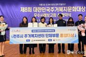 한국시사경제 전북취재본부 | 전주시 주거복지센터가 주거취약가구 발굴과 주거복지사업을 잘 수행한 기관으로 평가됐다. 전주시 주거복지센터는 20일 국회도서관 대강당에서 열린 ‘제8회 대한민국 주거복지 문화대상’에서 단체부문 종합대상을 수상했다. 주거복지문화운동본부가 주최하고 국토교통부가 후원한 ‘대한민국 주거복지 문화대상’은 아름다운 주거복지공동체를 형성하고, 주거복지 분야의 모범을 선도하고 기여한 단체·기관·개인의 노력과 성과를 발굴해 지역사회에 알리기 위해 올해로 8년째 해마다 열리고 있다. 이날 시상은 개인·단체·기관 부문 등 총 41개에 대해 진행됐으며, 종합대상은 대상을 수상한 9개 기관·단체 중 주거복지 전문위원의 심사를 통해 각 1곳이 선정됐다. 그 결과 전주시 주거복지센터는 △행정과의 연계를 통한 주거취약계층 발굴과 촘촘한 주거서비스 제공 △민·관·학 협력의 자원 연계 네트워크 사업이 우수사례로 평가받아 단체부문에서 종합대상을 수상하는 영예를 안았다. 이에 앞서 전주시 주거복지센터는 지난 2020년 개소 이후 △주거복지 상담 및 정보제공 △주거서비스 제공 △교육 및 홍보 △네
