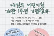 한국시사경제 충남취재본부 | 천안시 두정도서관은 오는 16~ 21일 ‘내일의 어린이실’ 개관 1주년 맞아 다채로운 기념행사를 운영한다고 15일 밝혔다. 도서관은 8~ 13세 어린이와 가족들을 대상으로 ▲내일의 어린이실 한바퀴 스탬프 투어 ▲1주년 축하 포토존 ▲내일이의 손이 머무른 책 전시 등을 선보인다. 개관일인 20일에는 어린이실에 방문하는 어린이들과 함께 축하 떡을 나누며 1주년의 의미를 함께 나눌 예정이다. 이와 함께 도서관 16주년과 크리스마스를 기념해 ‘반짝이는 리듬 케이크’ 타악기 콘서트와 특별 주문 케이크 만들기 등 다채로운 프로그램을 통해 1주년을 축하할 예정이다. 두정도서관 관계자는 “1주년 기념행사를 통해 어린이와 가족 모두가 행복한 시간을 보내기를 바란다”며 “내년에도 내일의 어린이실을 내실있게 운영할 수 있도록 노력할 것”이라고 말했다. 한편, 지난 11월까지 8만 3,000여 명의 어린이들이 내일의 어린이실을 이용했으며, 81개교 1,559명의 어린이가 회원으로 가입했다.