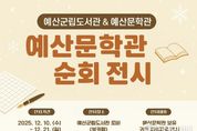 한국시사경제 충남취재본부 | 예산군 예산군립도서관은 오는 12월 10일부터 21일까지 예산문학관이 보유한 문학 자료를 대여해 순회 전시를 운영한다. 이번 전시는 ‘분례기’ 방영웅 작가의 작품을 비롯해 예산에서 활동한 문인들의 저작물, 지역 문학단체 회지 창간호부터 이어지는 역사 기록 등 다양한 자료를 만나볼 수 있도록 구성했다. 특히 지역 문학의 흐름과 가치, 창작 활동의 발자취를 살펴볼 수 있는 의미 있는 전시가 될 전망이다. 전시는 도서관 1층 로비 북카페 공간에서 운영되며, 전시기간 내 9시부터 18시까지 누구나 자유롭게 관람할 수 있다. 도서관 관계자는 “예산문학관의 협조로 지역 문학의 소중한 자료를 도서관에서 소개할 수 있게 돼 뜻깊다”며 “앞으로도 문화기관과의 협력을 확대해 더욱 풍성한 문화 프로그램을 제공하겠다”고 말했다.