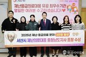 한국시사경제 충남취재본부 | 충남 서산시는 23일 (사)내생애봄날 눈이부시게가 관내 어려운 이웃을 돕기 위한 성금 200만 원을 기탁했다고 밝혔다. 시는 이날 시청 시장실에서 이완섭 서산시장, 김은혜 (사)내생애봄날 눈이부시게 회장 등이 참석한 가운데 기탁식을 개최했다. 이번 성금은 추운 겨울을 보내는 어려운 이웃에게 온정을 전하기 위해 회원 30여 명의 자발적인 모금으로 마련됐다. 시는 성금을 충남사회복지공동모금회를 통해 관내 취약계층의 지원에 사용할 예정이다. 김은혜 (사)내생애봄날 눈이부시게 회장은 “회원들의 작은 정성이 연말을 보내는 이웃들에게 위로와 희망이 되길 바란다”라며 “앞으로도 지역사회와 함께하는 나눔 활동을 꾸준히 이어가겠다”라고 말했다. 이완섭 서산시장은 “어려운 시기에도 나눔을 실천해 주신 회원 여러분께 깊이 감사드린다.”라며, “기탁된 성금은 도움이 꼭 필요한 이웃들에게 소중히 전달하겠다.”고 감사의 뜻을 전했다. 한편, (사)내생애봄날 눈이부시게는 2022년 6월 설립된 단체로, 사진·영상 촬영, 공연, 공예, 헤어·메이크업 등 다양한 재능기부 봉사