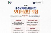 한국시사경제 충북취재본부 | (재)충주문화관광재단은 오는 30일까지 시민과 함께하는 소통 문화 확산을 위해 ‘2026 충주문화예술지원사업 시민 모니터링단’을 공개 모집한다고 밝혔다. 재단에 따르면, 시민 모니터링단은 2026 충주문화예술지원사업에 최종 선정된 예술단체(인)를 대상으로 공연 및 전시 현장을 직접 방문하여, 사업 운영 과정과 성과를 시민(관객)의 눈높이에서 모니터링을 통해 다양한 의견을 제시하는 역할을 맡는다. 이번 모니터링단 모집인원은 공연분야 4명, 시각분야 4명으로 문화예술분야에 관심 있고, 지원사업에 대한 홍보가 가능한 만 19세 이상 충주시민이라면 누구나 신청 가능하며 활동기간은 오는 4월부터 12월 충주문화예술지원사업 종료시 까지 활동하게 된다. 시민 모니터링단은 문화예술지원사업 공연 및 전시 현장 관람 후 모니티링 일지 및 평가지표 작성을 하며, 모니터링 회당 5만원의 활동비를 지급하고 활동 종료 후 활동증명서를 발급받는 혜택을 제공할 계획이다. 재단 관계자는 “2026년 지원사업 추진 현장을 방문하여 시민의 목소리에 귀를 귀울여 객관적인 모니터링을 통해, 사업 진행 상황