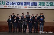 한국시사경제 전남취재본부 | 전라남도와 광주광역시는 전남·광주 행정통합 특별법의 핵심 특례가 중앙부처 검토 과정에서 대폭 축소·배제된 상황에 대해 강한 우려를 표하며, 국회 심사 과정에서 실질적인 권한 이양이 반드시 반영되도록 총력 대응에 나서기로 했다. 전남도와 광주시는 더불어민주당 전남도당·광주시당과 함께 8일 목포대학교 남악캠퍼스에서 ‘전남광주특별법안 논의 제5차 간담회’를 열고, 전남·광주 행정통합 특별법 추진 상황을 점검하고 국회 심사 대응 방안을 논의했다. 이날 간담회에는 김영록 전남도지사와 강기정 광주광역시장, 지역 국회의원들이 참석해 전남광주통합특별시 설치를 위한 특별법에 대한 중앙부처 검토 의견을 공유하고, 국회 행정안전위원회 심사 과정에서의 공동 대응 전략을 논의했다. 전남도와 광주시는 중앙부처 의견을 종합한 결과, 전체 374개 특례 가운데 상당수 조항이 불수용되거나 축소된 것으로 확인됐다고 밝혔다. 특히 에너지산업을 비롯한 주요 핵심 특례 대부분에 대해 중앙부처가 불수용 의견을 제시하면서, 통합특별시에 대한 과감한 권한 이양이라는 정부의 당초 약속이 후퇴할 수 있다는 우려가 제기됐다. &n