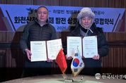 한국시사경제 권충언 기자 | 앞으로도 화천산천어축제에서 빙설 예술 최고봉으로 손꼽히는 하얼빈 빙등작품과 눈조형물을 만날 수 있게 됐다. 최문순 화천군수는 지난 7일, 중국 하얼빈을 방문해 화천군과 빙설문화발전 유한공사의 탄징신 예술감독과 양 기관 협력 강화를 내용으로 하는 협약서에 서명했다. 협약에 따라 양 기관은 얼음조각, 빙등, 눈조각 콘텐츠 분야에서 지속적 교류와 협력을 이어가기로 했다. 구체적으로 하얼빈 주재 빙설문화발전 유한공사 측은 내년 화천산천어축제에서도 실내얼음조각광장과 축제장 대형 눈조각 제작에 협력키로 했다. 또 얼음조각과 눈조각 분야 기술진과 연출가 등 전문가 상호 파견도 진행키로 했다. 나아가 빙설 콘텐츠를 활용한 국내,외 홍보 및 마케팅을 진행하고, 국제 관광 박람회 등에서도 공동 홍보에 나서기로 했다. 화천군은 지난 2007년 12월, 화천읍내 실내 주차시설에서 국내 처음으로 하얼빈 빙등 기술진들이 빚어낸 빙등작품을 도입한 바 있다. 2012년 12월부터는 화천읍 서화산 다목적 광장에서 산천어축제를 전후해 실내얼음조각광장을 운영 중이다.