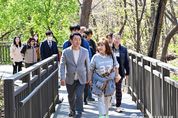 한국시사경제 경기북부취재본부 | 의정부시는 4월 7일 ‘추동 숲정원’ 조성 현장을 방문해 추진 현황을 점검하고, 지역 주민의 의견을 수렴했다. 능골 무장애길 입구부터 하늘마당, 잣나무쉼터, 물놀이장까지 약 6.0km 구간을 따라 현장을 확인하며 건의사항을 청취했다. 추동 숲정원은 약 22만 평 규모의 추동공원을 도심 속 생태 공간이자 산림휴양 공간으로 조성하는 사업이다. 현재 42.2ha 규모의 숲가꾸기와 8.8km 구간의 숲길 정비, 과학도서관 및 물놀이장 입구와 테마정원 조성을 완료했다. 하늘마당과 잣나무쉼터, 순환산책로(무장애길 1.4km, 숲둘레길 2.7km) 조성사업은 착공해 올해 상반기 준공을 목표로 추진 중이다. 특히 공원 정상부인 효자봉에 들어설 ‘하늘마당’은 주변 경관을 한눈에 조망할 수 있는 전망 공간으로 조성할 계획으로, 일출‧일몰을 감상할 수 있는 장소로 활용될 전망이다. ‘잣나무쉼터’는 잣나무와 전나무 숲 속에 목재 데크와 해먹 등을 설치해 시민들이 자연 속에서 온전히 쉴 수 있는 힐링 공간으로 꾸밀 예정이다. 시는 현장 관리와 안전 확보를 위해 해빙