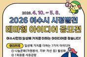 한국시사경제 전남취재본부 | 여수시는 시민들의 참신하고 창의적인 의견을 정책에 반영해 ‘시민이 참여하는 시정’을 실현하고자 오는 4월 10일부터 5월 8일까지 ‘2026년 여수시 시정발전 테마형 아이디어 공모전’을 실시한다고 밝혔다. 이번 공모전은 ‘일상에 가치를 더하는 7가지 아이디어’라는 주제로, 시민 생활과 밀접한 현안들에 대한 해결 방안을 발굴하기 위해 마련됐다. 공모 분야는 시민 삶의 질을 높일 수 있는 7개 분야로 ▲나눔문화(자원봉사, 기부 등) 활성화 ▲1회용품 사용감량 ▲불법 옥외광고물 정비 및 활용 ▲자전거 이용 활성화 ▲지역사회 청소년 참여 및 활동 ▲독서문화진흥 및 도서관 특성화 ▲문화접근성 확대 등이다. 여수 시민이라면 누구나 참여할 수 있으며, 접수된 제안은 실시가능성, 창의성, 효과성 등 7개 심사항목에 대한 심의를 거쳐 7월 중 최종 선정된다. 우수 제안자에게는 ▲최우수(40만 원) ▲우수(20만 원) ▲장려(10만 원) 상당의 여수사랑상품권이 지급된다. 참여를 원하는 시민은 여수시 누리집 고시공고에서 제출서류를 확인한 뒤 국민생각함(국민신문고 및 누리집) 또