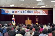 한국시사경제 문화팀 | 구미시는 7일 노인종합복지관 대강당에서 (사)대한노인회구미시지회(회장 이재호) 주관으로‘제31기 노인대학 입학식’을 개최했다. 이날 입학식에는 입학생 등 어르신 200여 명이 참석해 노인대학 입학을 축하하며 배움의 첫걸음을 내디뎠다. 입학생들은 다양한 교육 프로그램 참여와 소통을 통해 활기찬 노후를 보내겠다는 기대와 배움에 대한 열정으로 행사장을 가득 채웠다. 이순락 노인대학장은“어르신들이 즐겁고 유익한 시간을 보낼 수 있도록 다양한 교육 프로그램을 준비했다”며“노인대학에서 배움의 즐거움을 느끼고 삶의 활력을 되찾는 소중한 시간이 되길 바란다”고 말했다. 황은채 사회복지국장은 “노인대학이 어르신들의 건전한 여가와 소통의 장으로 자리매김하길 기대한다”며“앞으로도 어르신들이 건강하고 활기찬 노후를 보내실 수 있도록 다양한 정책과 지원을 아끼지 않겠다”고 밝혔다. 대한노인회구미시지회가 운영하는 노인대학은 1995년 개설한 이후 현재까지 5,460여명의 졸업생을 배출했다. 이번 제31기 노인대학은 204명의 입학생이 참여해 운영된다. 교육과정은 4월부터 11월까지 매주